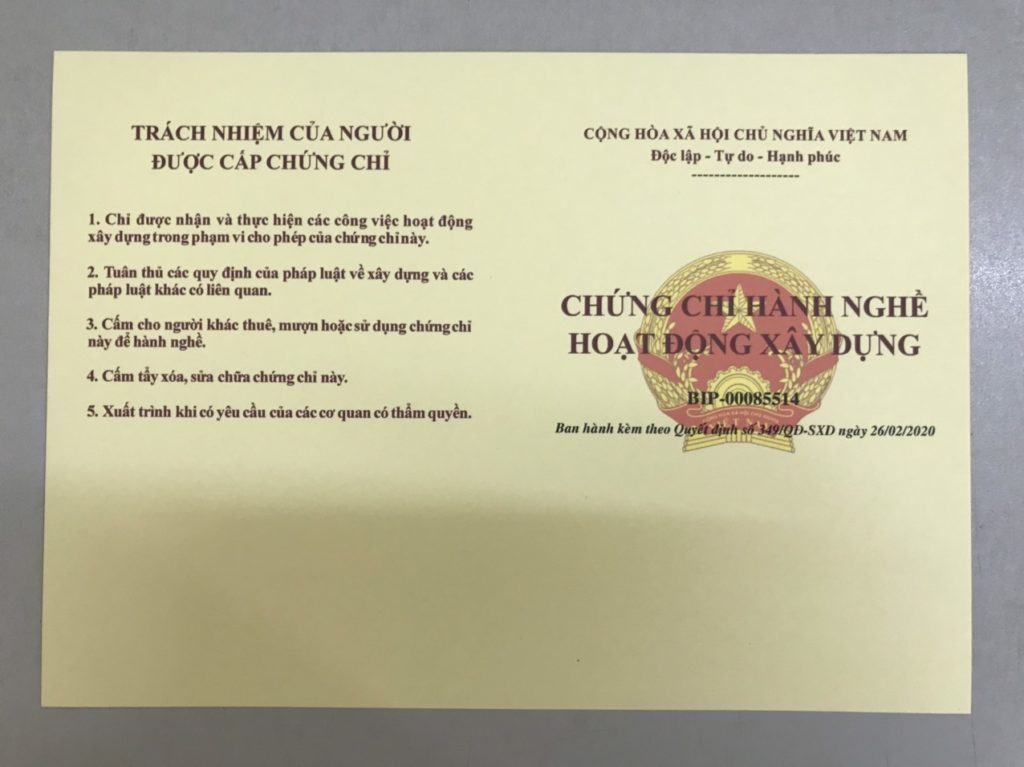 Bước 3: Trả kết quả, cấp chứng chỉ hành nghề xây dựng mới: Sau thời hạn 20 ngày khi kiểm duyệt hồ sơ hợp lệ, bạn sẽ nhận được chứng chỉ hành nghề xây dựng mới thay thế cho chứng chỉ đã bị thu hồi.