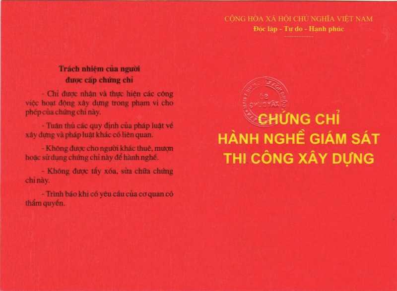 Cục Quản lý hoạt động Xây dựng – Bộ Xây dựng cấp chứng chỉ hành nghề giám sát hạng I.